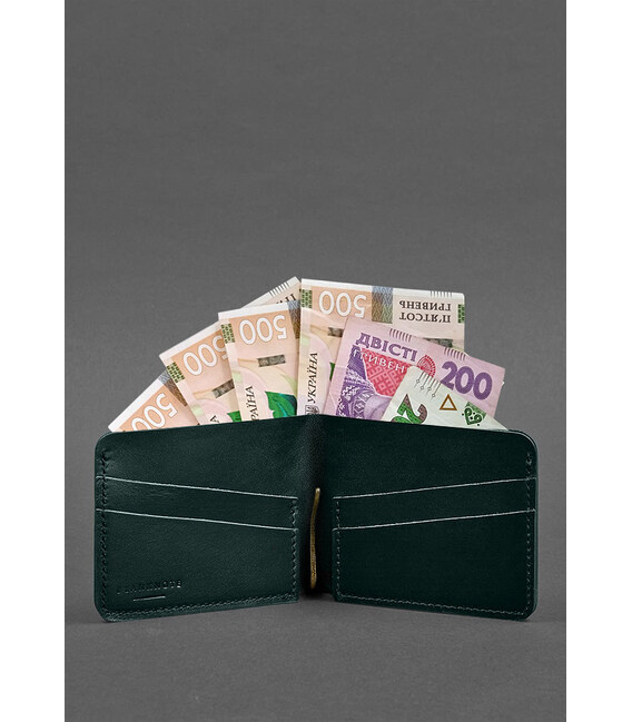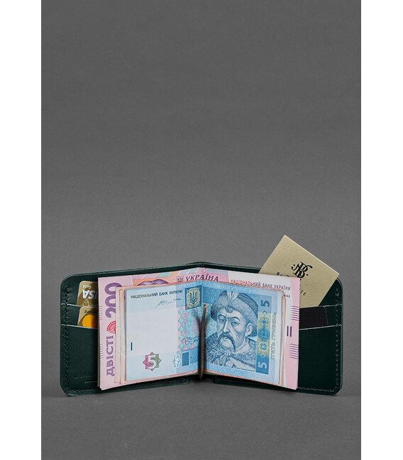 Шкіряне портмоне 4.4 (з затискачем) зелений краст