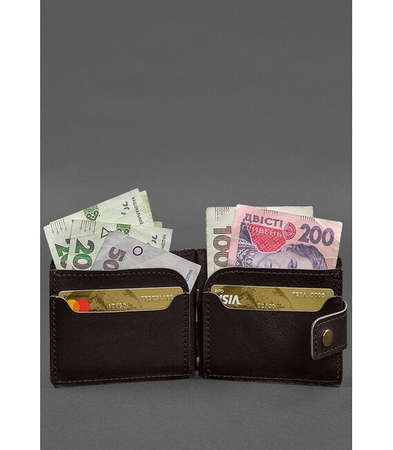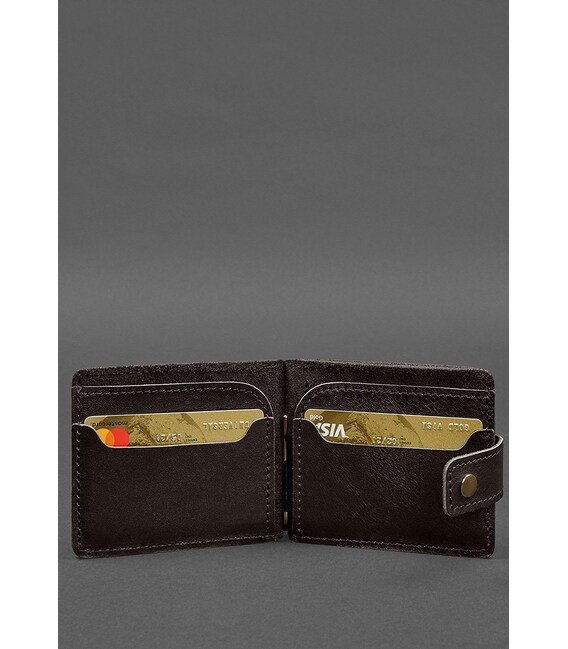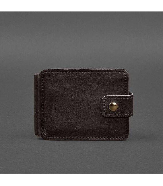 Шкіряне портмоне 13.1 затискач з хлястиком темно-коричневий краст