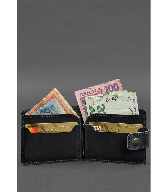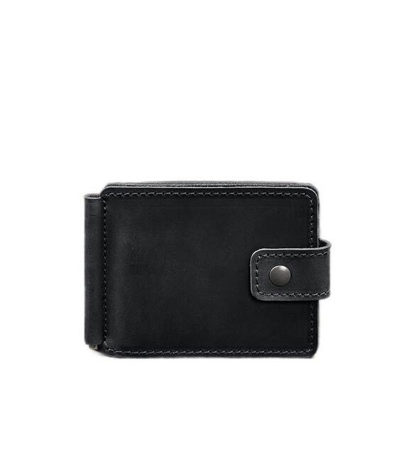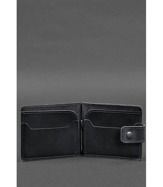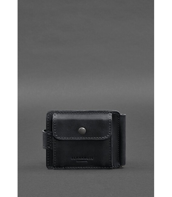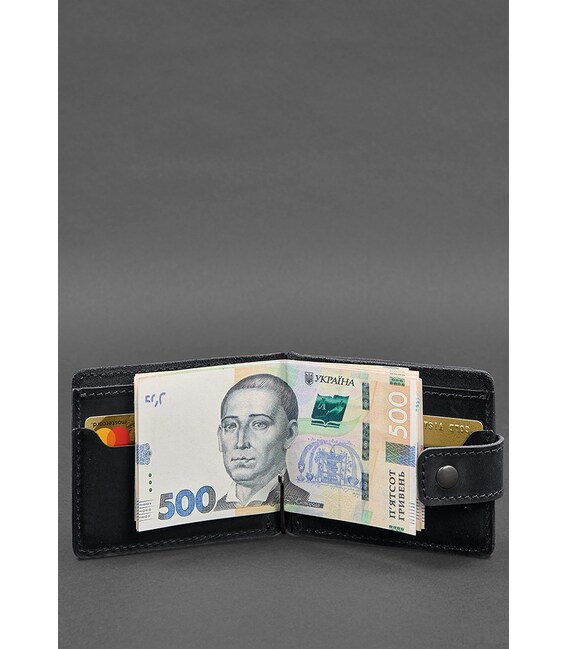 Шкіряне портмоне 13.1 затискач з хлястиком Чорний Crazy Horse