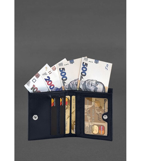 Шкіряне портмоне на кнопці Brut синій краст