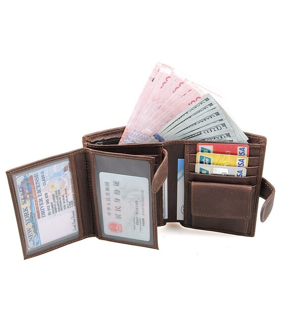 Оригінальний чоловічий шкіряний гаманець коричневого кольору. Гаманець надійно прошитий світло-коричневою ниткою. Аксесуар зручно тримати в руці, але в передню кишеню джинсів він навряд чи поміститься. Гаманець упакований в текстильний пилозахисний мішечок білого кольору.