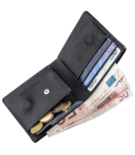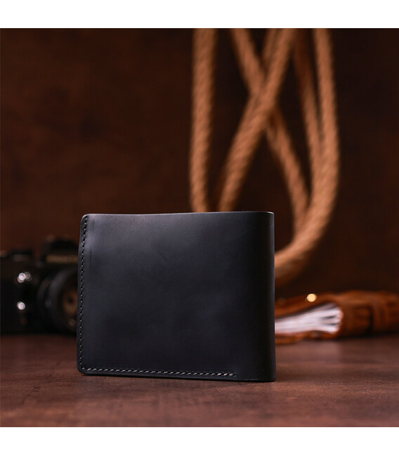 Чорне класичне портмоне з італійської натуральної шкіри найвищої якості. По краях модель прошита чорним рядком в дизайн виробу. На лицьовій і внутрішній стороні аксесуара є тиснення логотипу виробника. Шкіра має невеликий блиск і переливається на сонці. Виріб закривається надійним магнітом. Модель поєднує в собі вес найнеобхідніший функціонал. Виріб невеликого розміру і з легкістю поміститься в кишеню або маленьку сумку. Портмоне стане знахідкою для тих, хто любить носити з собою багато карток. У комплекті до виробу йде фірмова картонна упаковка.