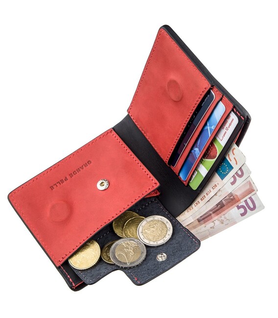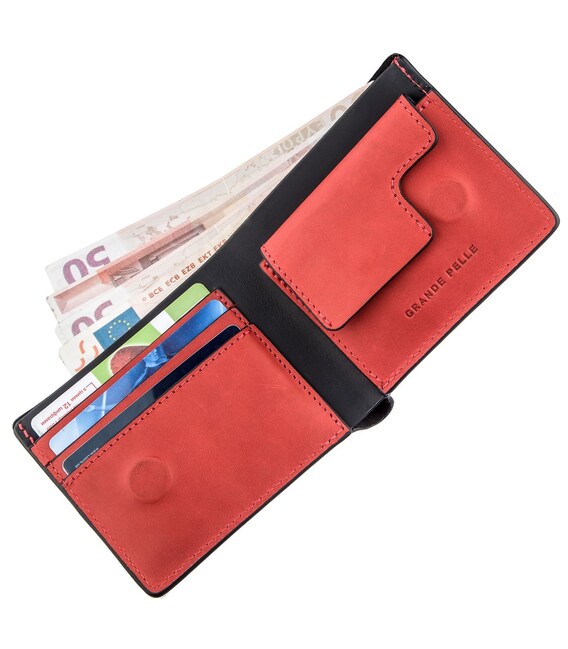- 3 слота під кредитки з натуральної шкіри червоного кольору;