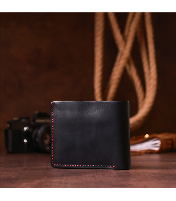 Яскраве і оригінальне портмоне в комбінації двох кольорів з натуральної шкіри. Дуже стильно аксесуар підкреслює червона строчка і вставки шкіри яскравого червоного кольору. Модель закривається надійним магнітом. Ви не зможете не помітити незвичайного дизайну класичного портмоне. Поєднання кольорів шкіри ідеально підібрані. Ви можете бути впевнені, що виріб буде служити Вам не один рік, і ви залишитеся небайдужі після покупки до аксесуарів даного українського бренду. Портмоне стане прекрасним подарунком для близької людини, а найголовніше потрібним і практичним. У комплекті з аксесуаром йде фірмова картонна упаковка.