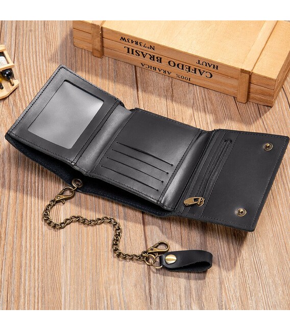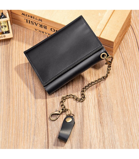 Функціональний та стильний гаманець унісекс на ланцюжку. Модель має неповторний і оригінальний дизайн. Невеликий розмір аксесуара дозволить помістити його в невелику сумку або кишеню штанів. Підійде для любителів невеликих гаманців. Виріб в три складання. Гаманець буде прекрасним подарунком для ваших близьких і друзів.