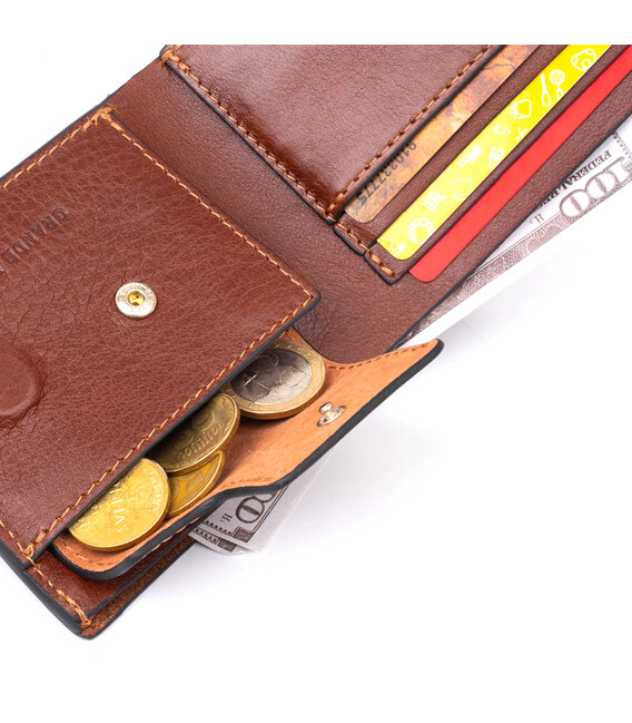 Популярна модель тепер і в коричневому кольорі. Два відділення для купюр, осередки для кредиток, монетниця на кнопці - все це створює практичний дизайн для сучасного чоловіка. Портмоне підійде для повсякденного життя або на подарунок. Аксесуар у блискучій гладкій шкірі, яка зовсім невибаглива в догляді. Доповнено портмоне якісною фурнітурою, яка буде вам довго служити. Аксесуар зручно лежить в руці, поміщається в кишеню або маленьку сумку. Упаковано портмоне в повстяний чохол.