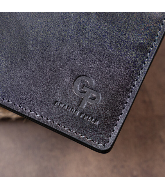 Горизонтальне портмоне в гладкій шкірі без застібки GRANDE PELLE 11311 Чорне