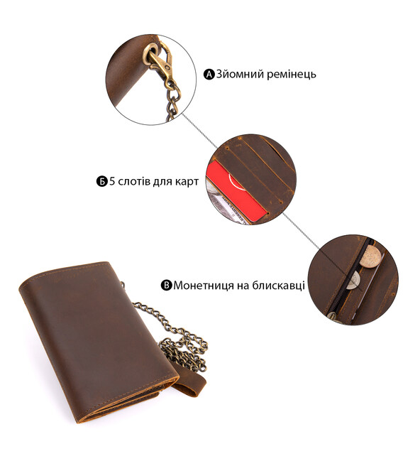 Детальніше Портмоне унісекс з ланцюжком матове Vintage 20439 Коричневе