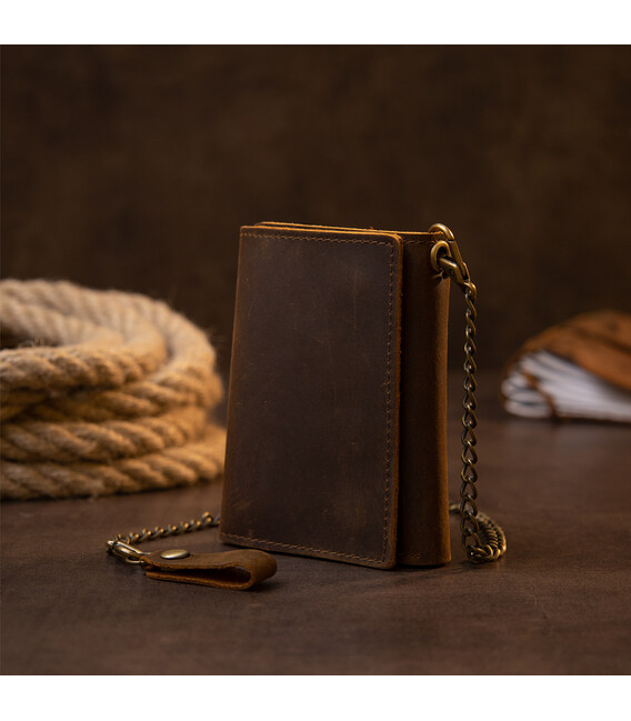 Портмоне унісекс з ланцюжком матове Vintage 20439 Коричневе
