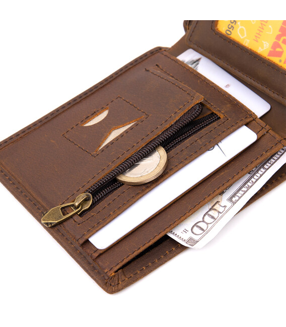 Тонке компактне матове портмоне з натуральної шкіри без застібки. Виріб має коричневий насичений колір. Усередині досить осередків для кредиток і два відділення для купюр. Аксесуар має сучасний дизайн. Портмоне поміститься в маленьку сумку або кишеню брюк. Гаманець стане прекрасним подарунком для ваших близьких. Портмоне має весь самий необхідний функціонал. Гаманець дуже приємний на дотик. Підійде для тих, хто не любить великих аксесуарів.