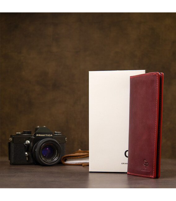 Шкіряне вінтажне портмоне GRANDE PELLE 11468 Бордовий