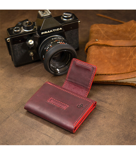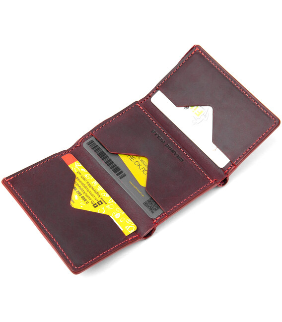 Практичне і дуже стильне портмоне з натуральної шкіри в елегантному бордовому кольорі. Має красиву фактуру з ефектом старовини, що дуже модно сьогодні. Всередині є 6 окремих слотів для візитних і кредитних карт, а також одне містке відділення для банкнот. Упаковка - фірмовий чохол.