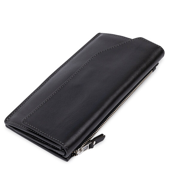 Чудове портмоне унісекс від українського виробника з цікавим скошеним клапаном. Матеріал виготовлення - натуральна шкіра з відмінними експлуатаційними характеристиками. Внутрішнє наповнення дуже практичне і зручне, все відділення місткі. Для найцінніших речей передбачено дві кишені на блискавці, одна з яких знаходиться на зовнішній стороні, що сприяє швидкому доступу.