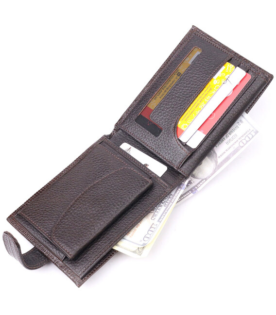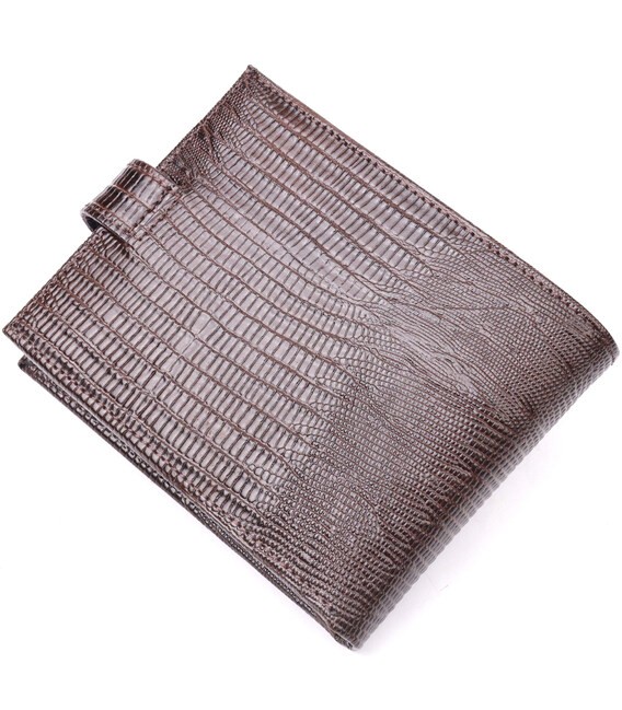 Детальніше Лаковане чоловіче портмоне з хлястиком із натуральної фактурної шкіри KARYA 21082 Коричневий