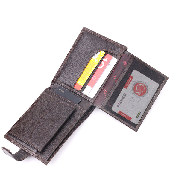 Лаковане чоловіче портмоне з хлястиком із натуральної фактурної шкіри KARYA 21082 Коричневий