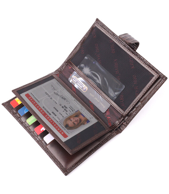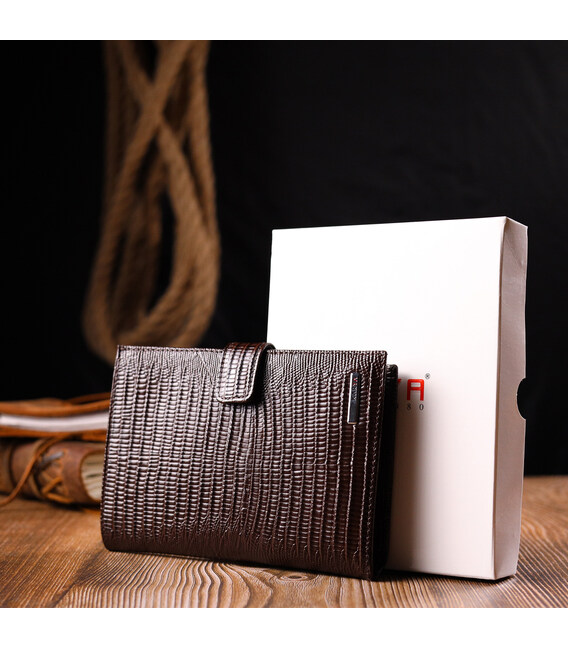 Лаковане чоловіче портмоне з хлястиком із натуральної фактурної шкіри KARYA 21194 Коричневий