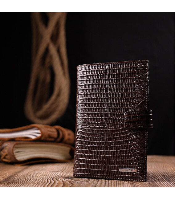 Детальніше Лаковане чоловіче портмоне з хлястиком із натуральної фактурної шкіри KARYA 21194 Коричневий