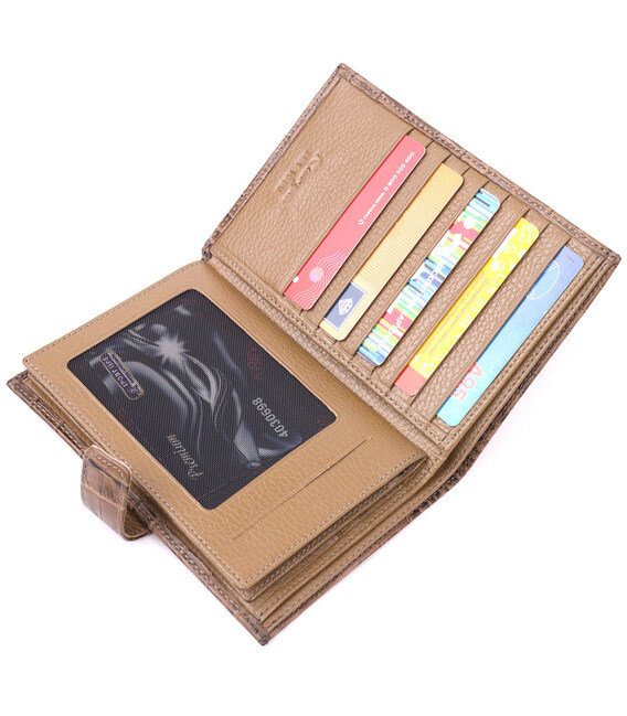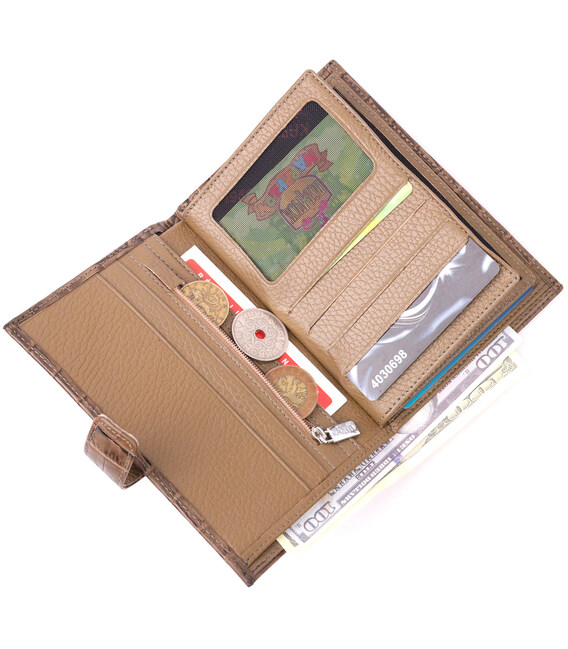 Детальніше Незвичайне чоловіче портмоне з хлястиком з натуральної шкіри з тисненням під крокодила KARYA 21196 Світло-коричневий