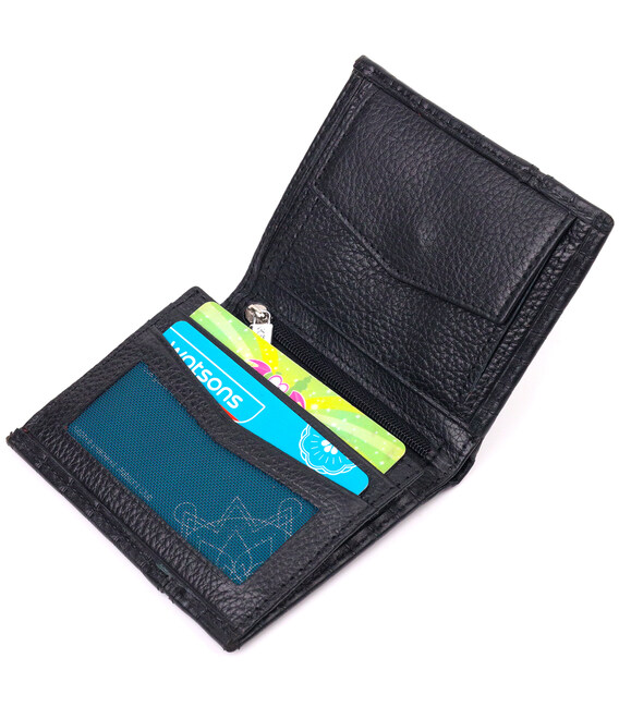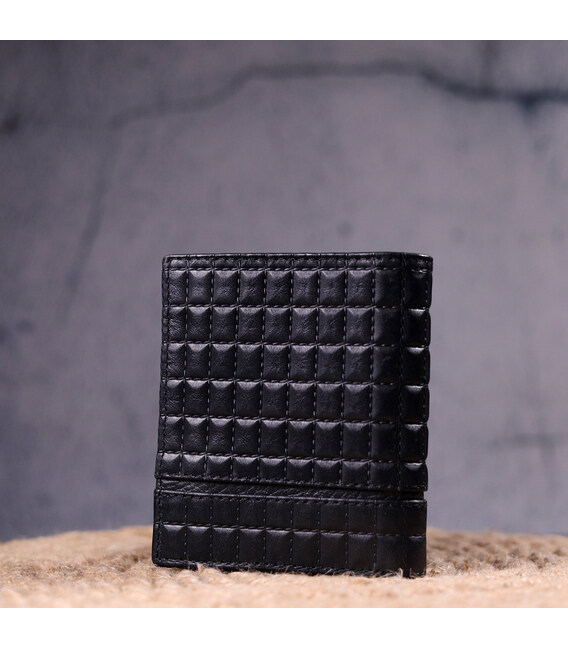 Класичний чоловічий гаманець з натуральної стьобаної шкіри в класичному чорному кольорі. Усередині знаходиться два відділення для купюр, шість відділень для карт, три приховані кишені та монетниця на кнопці. Закривається гаманець у два додавання без застібки. Вироби з натуральної шкіри завжди будуть чудовим подарунком для близької людини.