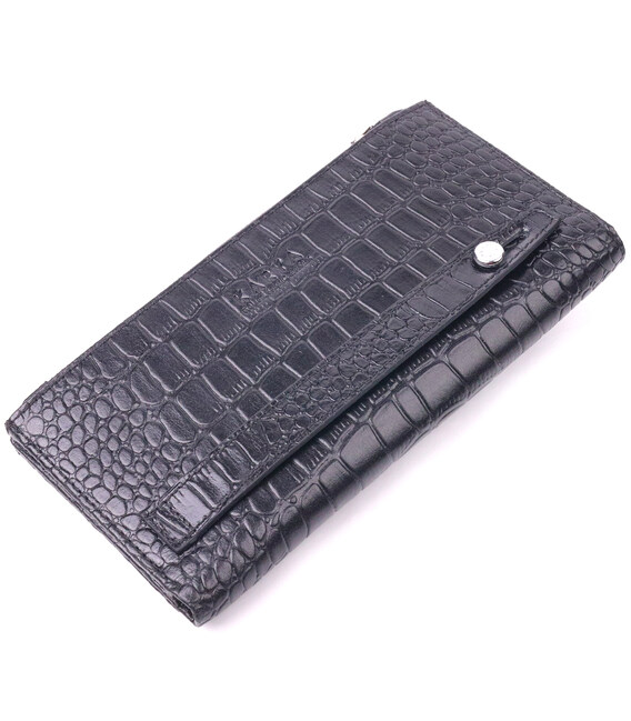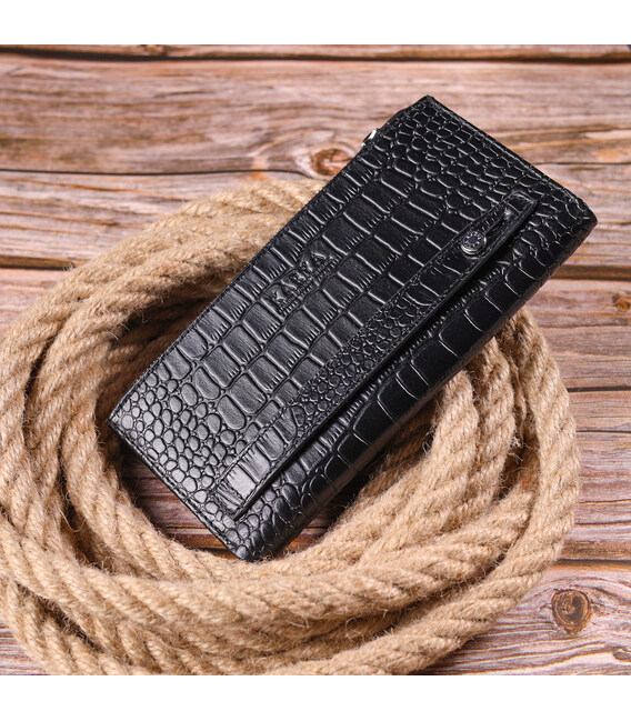 Детальніше Вертикальне чоловіче портмоне з натуральної шкіри з тисненням під крокодила KARYA 21420 Чорний