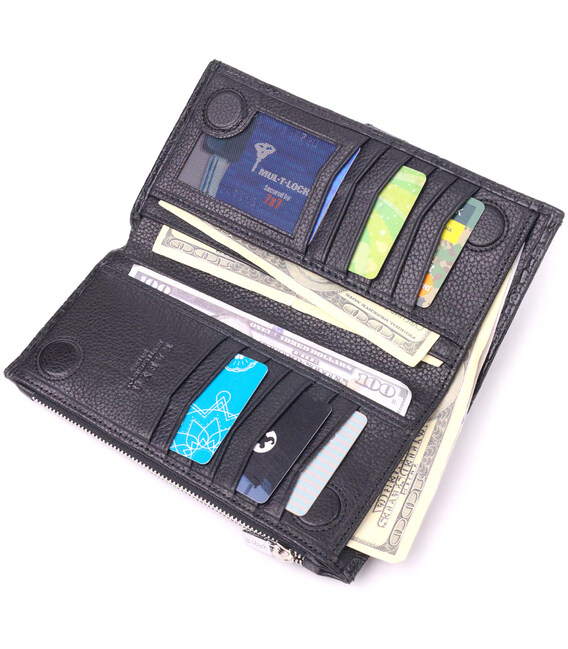 Функціональний гаманець із натуральної фактурної шкіри, з тисненням під крокодила. Гаманець складається з одного глибокого відділення, чотирьох прилеглих кишень, дванадцяти осередків для карт, відділення під сіточкою, відділення на блискавці ззовні та відділення для телефону, що закривається хлястиком на кнопку. У виробах цього елітного турецького бренду завжди використовуються найякісніші шкіряні матеріали та фурнітура. Аксесуар упакований у фірмову коробочку. Шкіряний виріб завжди буде чудовим подарунком для будь-якого чоловіка.