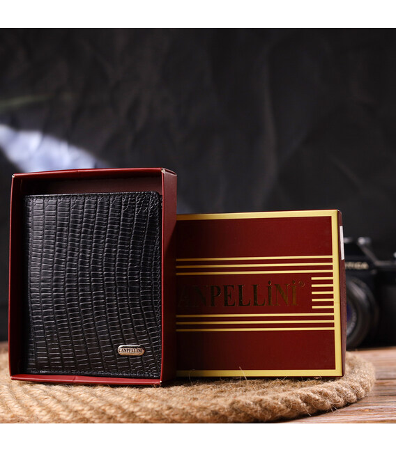 Чоловіче портмоне з натуральної фактурної шкіри CANPELLINI 21501 Чорне
