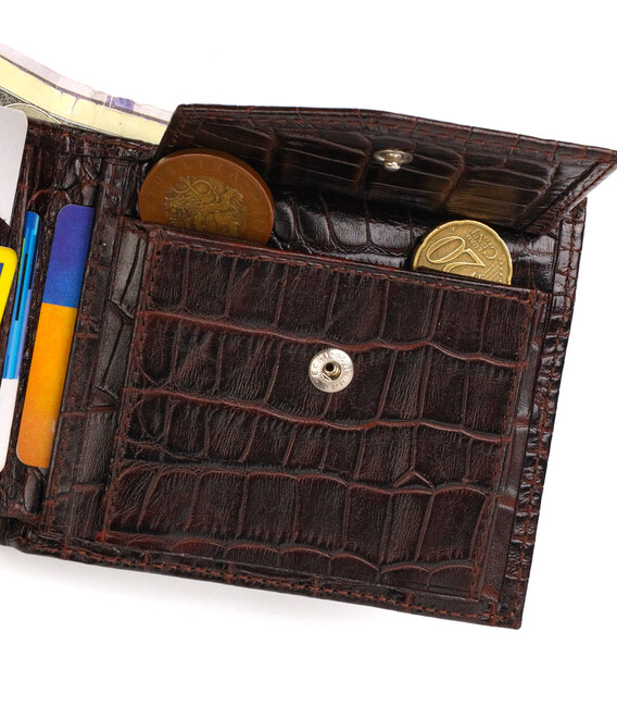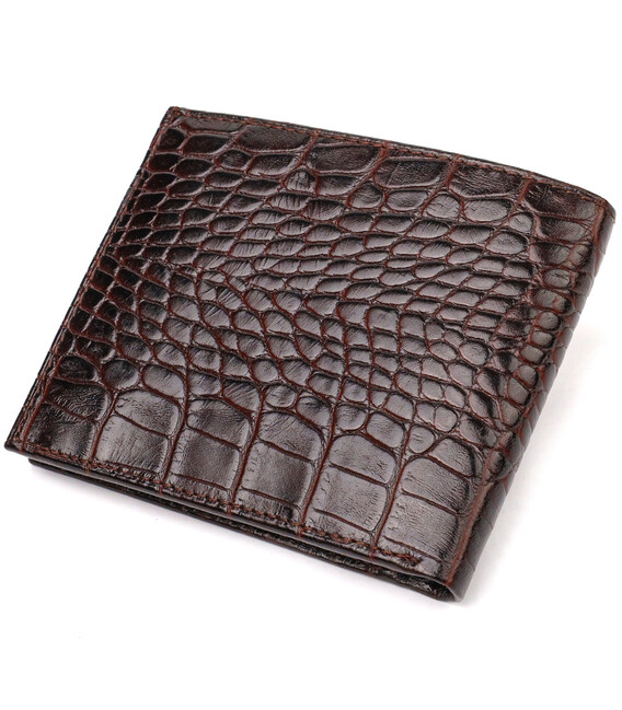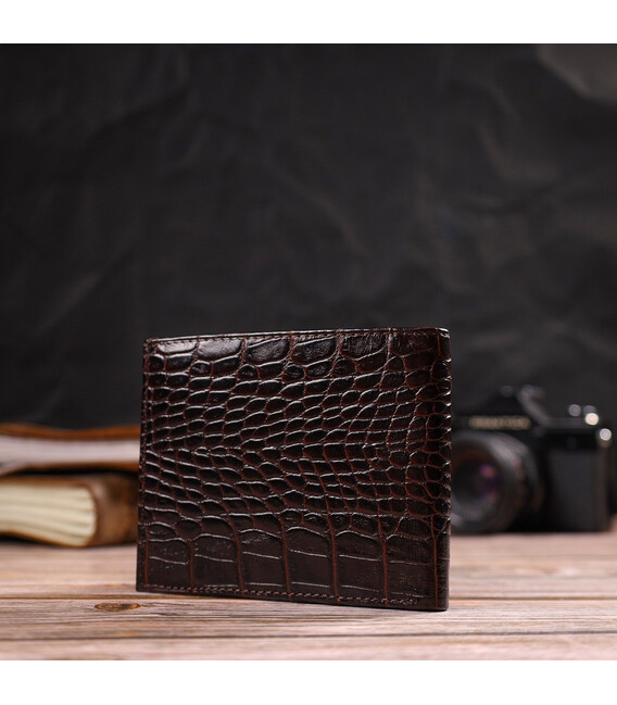 Детальніше Стильне чоловіче портмоне з натуральної фактурної шкіри з тисненням під крокодила CANPELLINI 21777 Коричневе