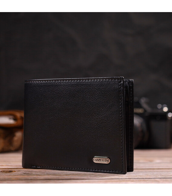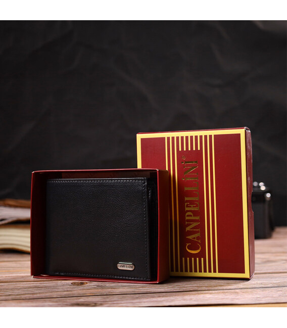Класичне горизонтальне чоловіче портмоне з натуральної шкіри флотар CANPELLINI 21778 Чорне