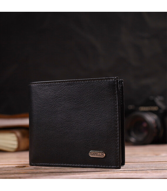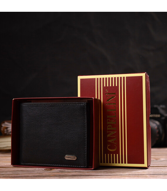 Класичний чоловічий портмоне з натуральної шкіри флотар CANPELLINI 21783 Чорний