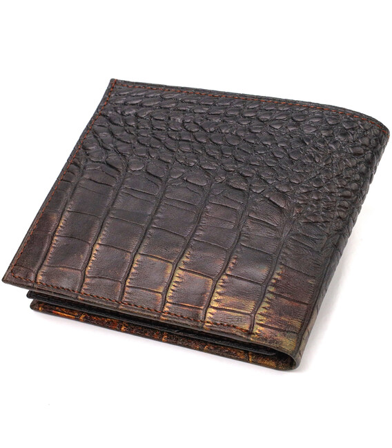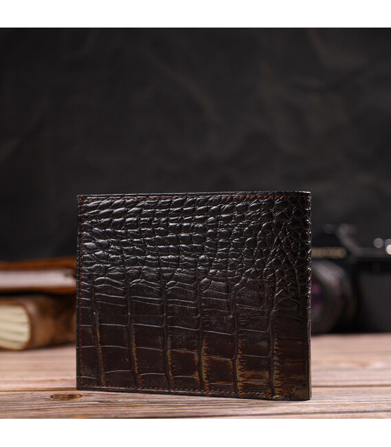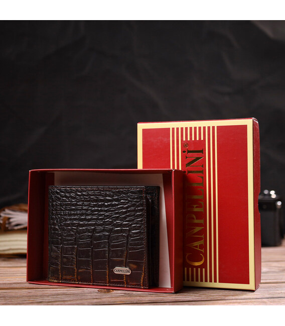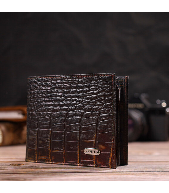 Детальніше Оригінальне чоловіче портмоне з натуральної фактурної шкіри з тисненням під крокодила CANPELLINI 21784 Темно-коричневе