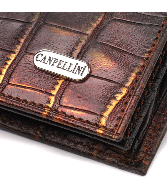 Оригінальне чоловіче портмоне з натуральної фактурної шкіри з тисненням під крокодила CANPELLINI 21784 Темно-коричневе