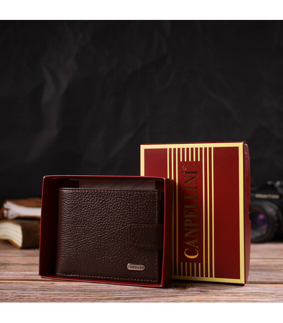 Ідеальне портмоне для чоловіків із натуральної зернистої шкіри CANPELLINI 21881 Коричневе