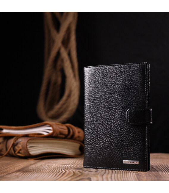Детальніше Вертикальний чоловічий портмоне з хлястиком з натуральної шкіри KARYA 21195 Чорний