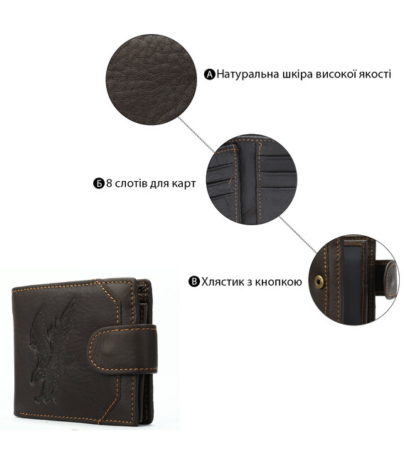 Детальніше Портмоне чоловіче з орлом 20231 Vintage Коричневе