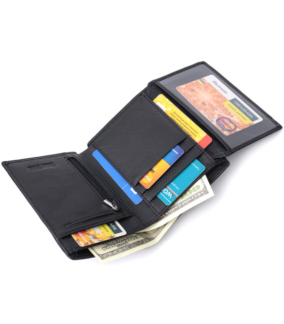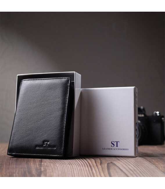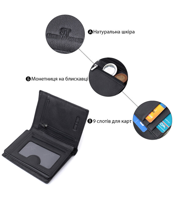 Чоловіче шкіряне портмоне для карток купюр та монет ST Leather 22733 Чорне