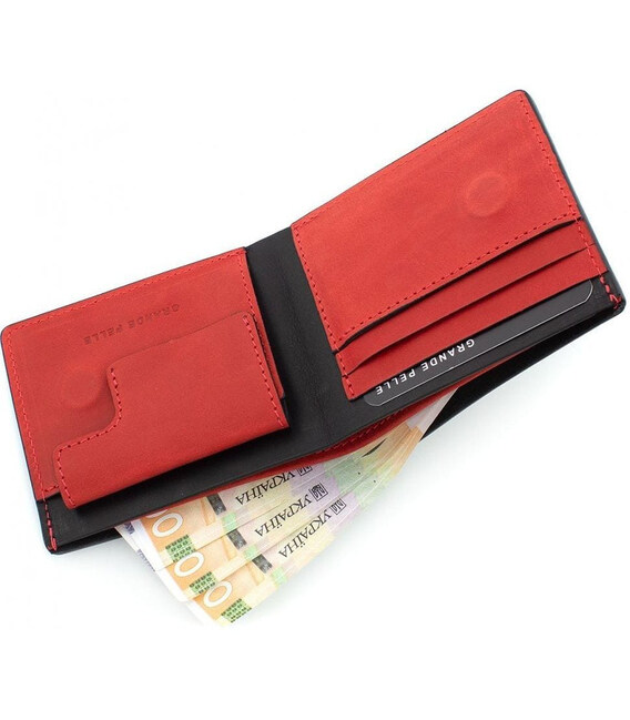 Портмоне Магніт, чорний з червоним Grande Pelle 50511060