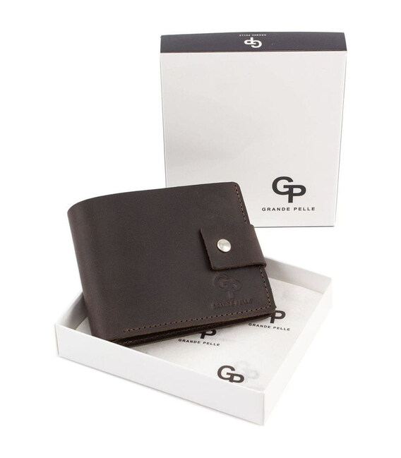 Портмоне 542120 Grande Pelle, коричневого кольору, з натуральної матової телячої шкіри коричневого кольору