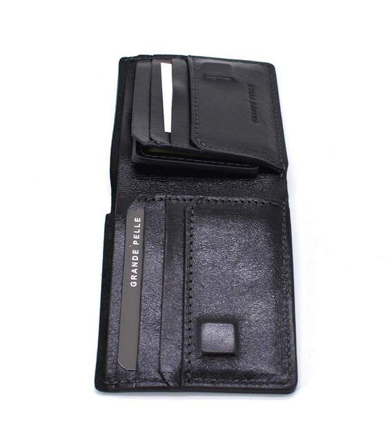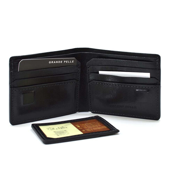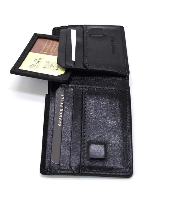 Детальніше Чоловічий шкіряний портмоне чорний глянсовий Grande Pelle 508610