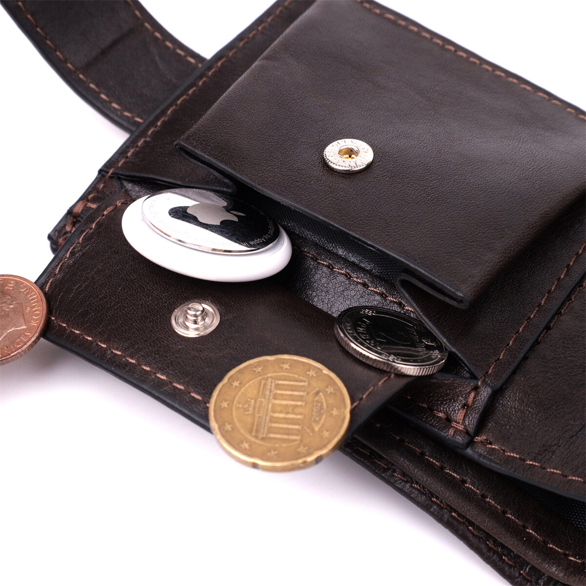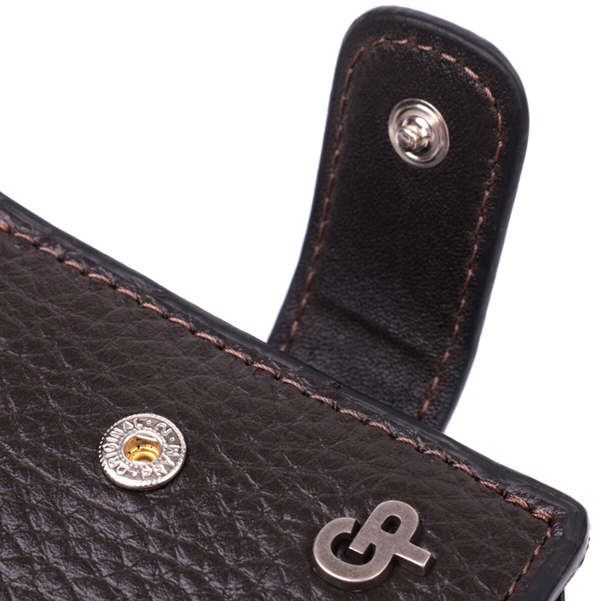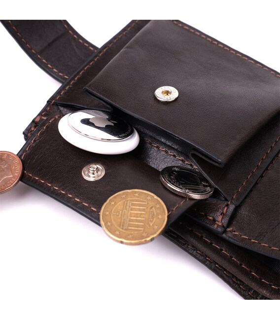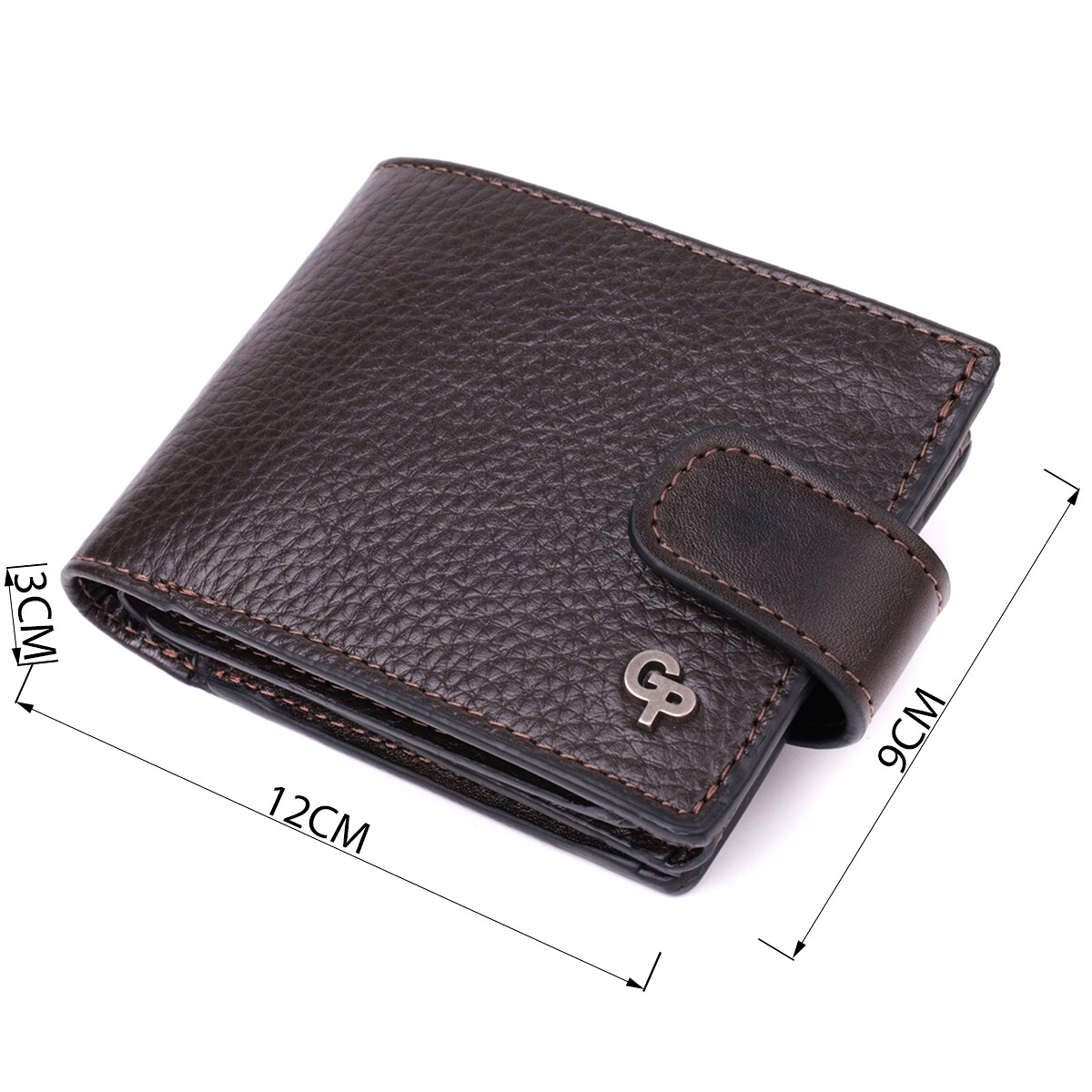 Містке портмоне для чоловіків з натуральної шкіри флотар зі вставками з гладкої шкіри. Портмоне у класичному стилі завжди залишається на піку популярності. Дизайн гаманця продуманий так, щоб він був максимально зручним та містким, при цьому залишаючись компактним. Аксесуар закривається на шкіряний хлястик із кнопкою. На лицьовій стороні, в правому нижньому кутку, розташований металевий логотип компанії виробника, що є запорукою високої якості. Виріб виконаний у коричневому кольорі з акуратним рядком, що підкреслює його елегантний зовнішній вигляд. Модель упакована у фірмову картонну коробку, яка може замінити подарункову упаковку. Портмоне стане чудовим рішенням для подарунка близькій людині.