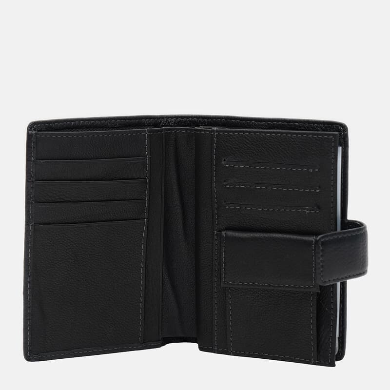 Чоловіче шкіряне портмоне виготовлене з якісної натуральної шкіри. Закривається кнопку. Має 2 відділення під купюри, 1 монетницю, 7 відділів під карти, 4 кишені та 8 відділень під документи. Підкладка-текстиль.