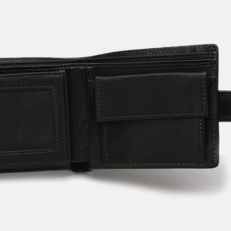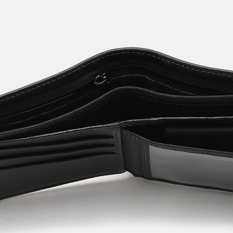 Портмоне закривається на кнопку, всередині має 2 відділи під купюри, 1 монетницю, 5 відділів під карти, 2 відділи під документи, додаткова кишеня на блискавці.