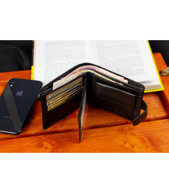 Чорне чоловіче портмоне з натуральної шкіри з фіксацією ST Leather ST103