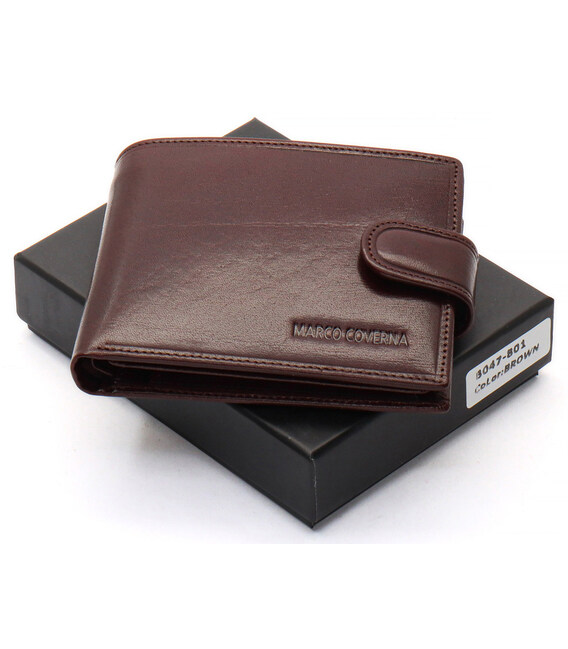 Коричневе чоловіче портмоне на кнопці з натуральної шкіри Marco Coverna B047-801