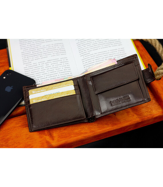Детальніше Коричневе чоловіче портмоне на кнопці з натуральної шкіри Marco Coverna B047-801