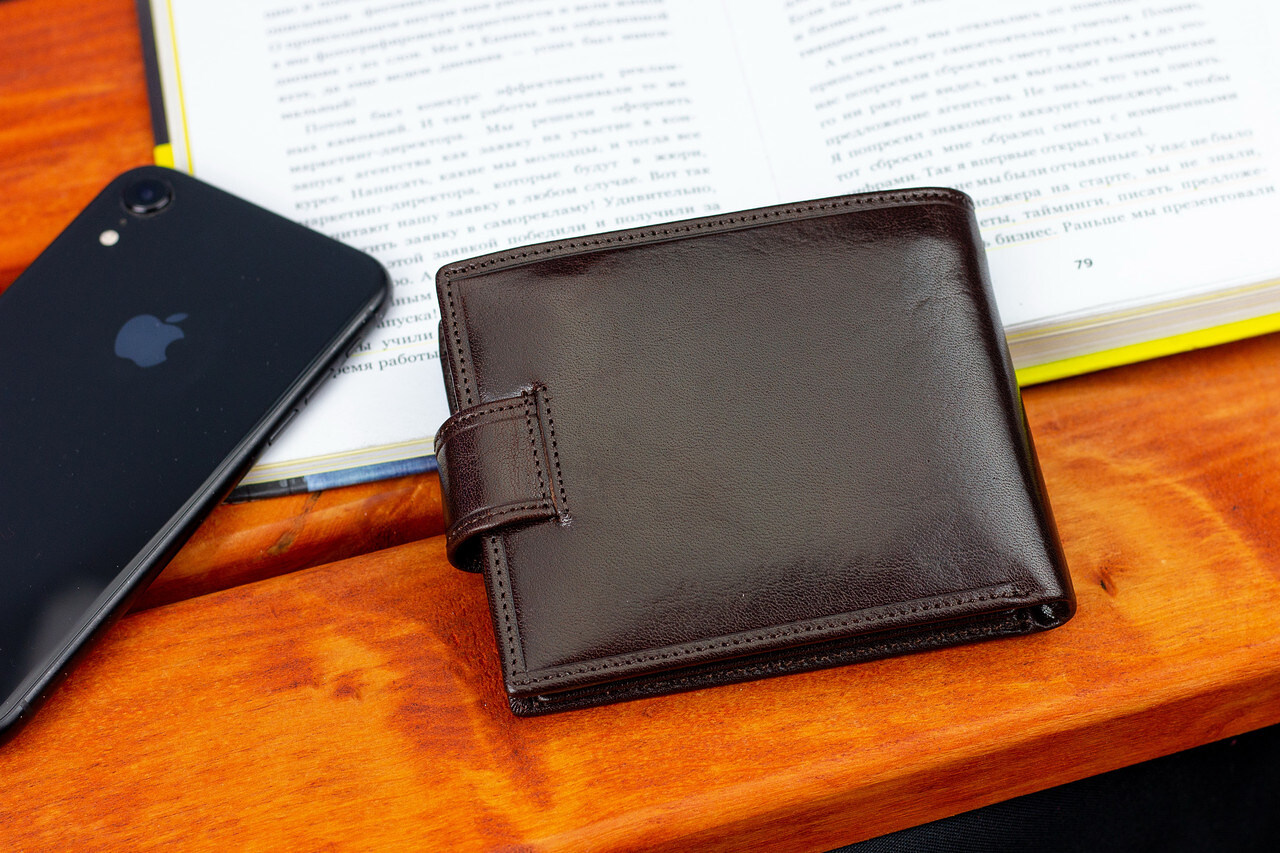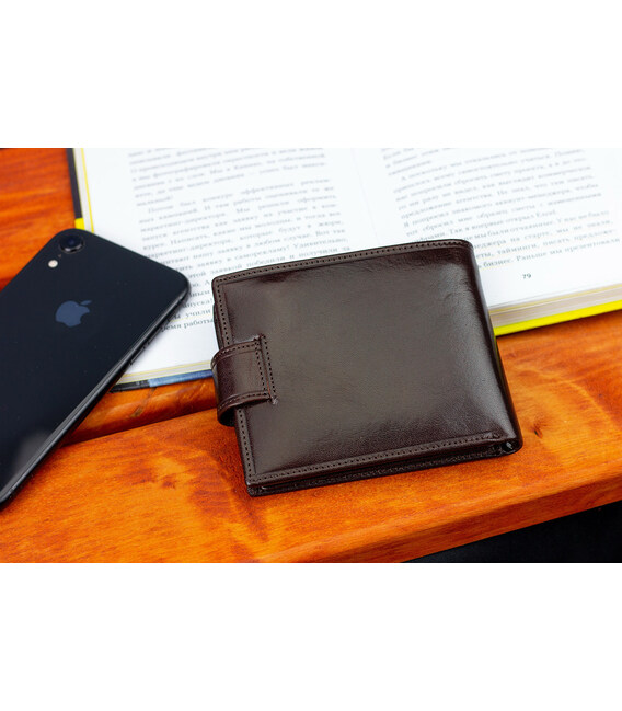 Стильне шкіряне портмоне з безліччю секцій сподобається діловим чоловікам. Три відділення для банкнот та одна кишеня на блискавці - надійне "сховище" власних коштів. Вмістовна монетниця на кнопці знаходиться всередині аксесуара. Дві прилеглі секції стануть у нагоді для документів або інших важливих паперів. У прозорих кишенях зручно носити водійські права та візитки. Класичний чоловічий гаманець-портмоне з натуральної шкіри буде служити своєму власнику щонайменше 10 років.