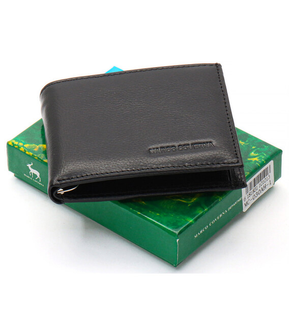 Чорне чоловіче портмоне з натуральної шкіри на магніті з затискачем Marco Coverna MC-030AH-1