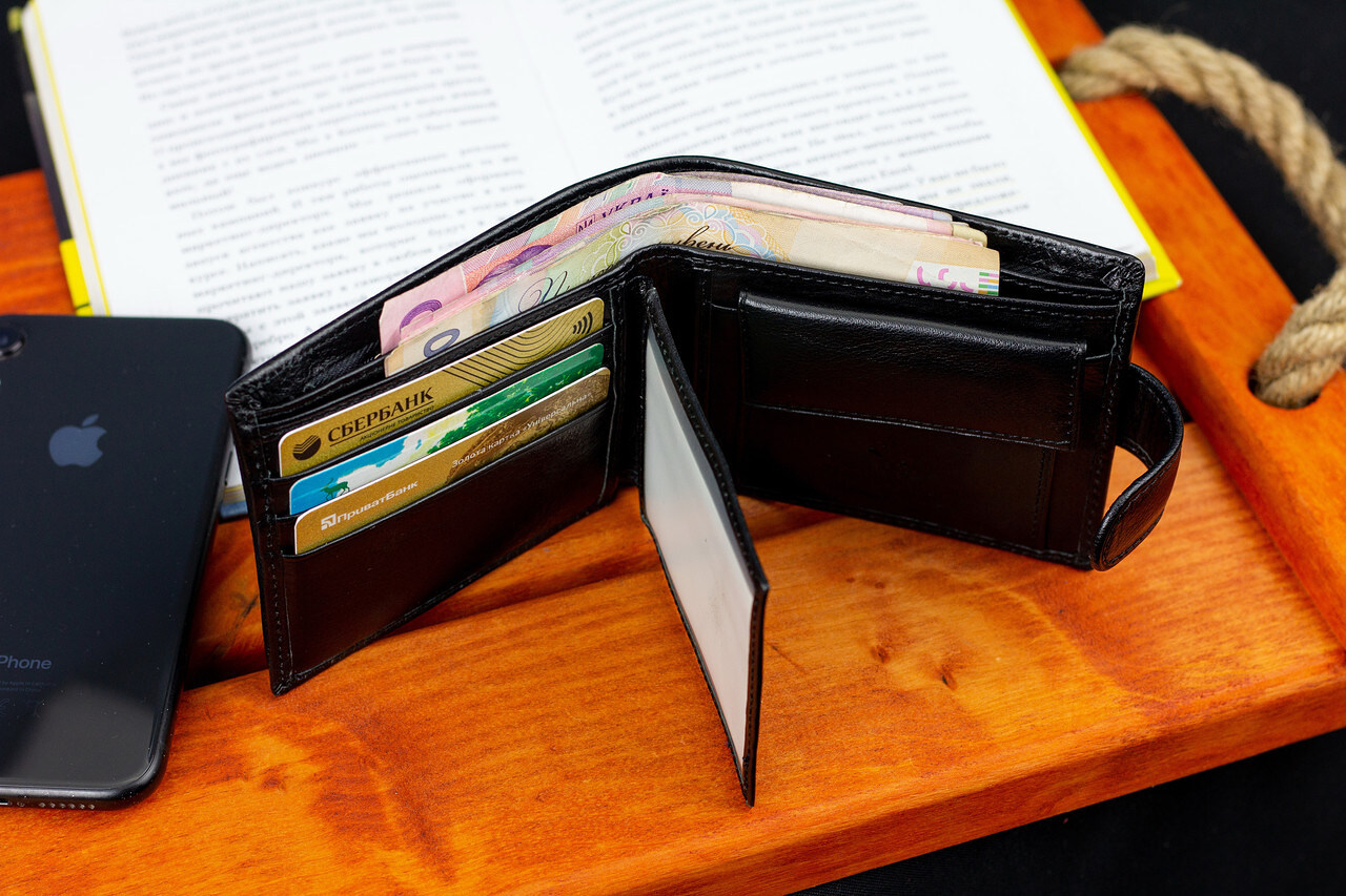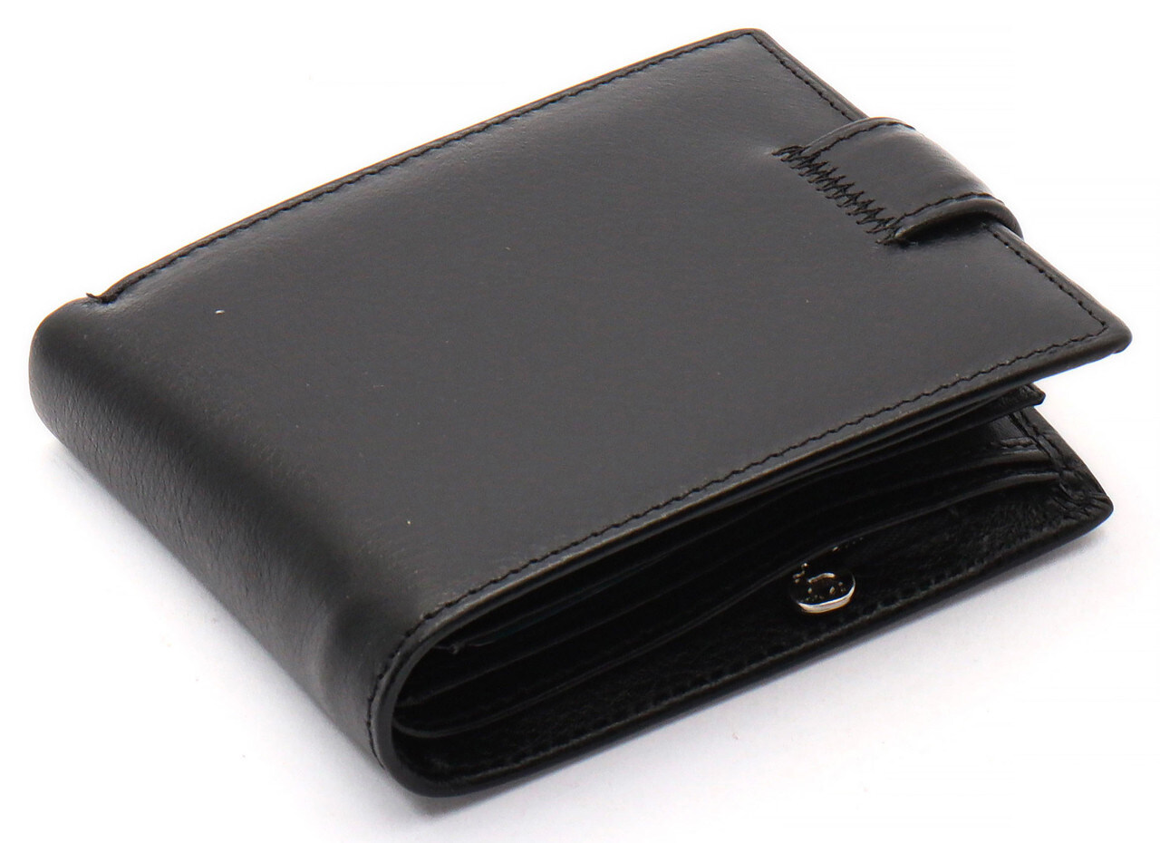 Чоловіче портмоне у класичному стилі підійде діловим людям. Модель оснащена двома прозорими віконцями для документів. Виріб фіксується кнопкою на хлястику, тому його зручно відкривати та швидко показувати перепустку або посвідчення. Для грошей відведено 3 великі відділення та вмістовна монетниця на кнопці. Три секції під картки розташовані у зручному місці та завжди під рукою. Дві прилеглі кишені допоможуть сховати гроші у надійному місці.