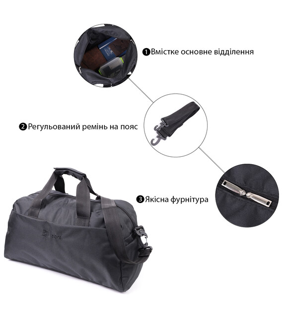Детальніше Текстильна дорожня сумка для поїздок спорту та туризму FABRA 22581 Чорна