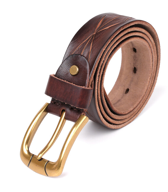 Ремінь преміум класу з високоякісної натуральної шкіри. Доповнено аксесуар солідної пряжкою з надійного металевого сплаву золотистого кольору. Ремінь регулюється по довжині в меншу сторону, зробити це дуже просто, потрібно всього лише відкрутити гвинтик біля пряжки, відрізати зайву частину і прикрутити назад. Вся дія у вас займе не більше 5 хвилин. Виріб з оригінальним діагональним тисненням ідеально впишеться в будь-який ваш стиль і гардероб.