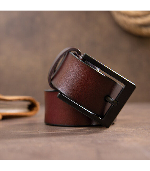 Ремінь з затемненою пряжкою чоловічий Vintage 20380 Коричневий